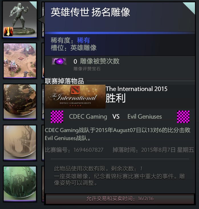 出个绝版Ti5胜者组决赛cdec击败eg的英雄传世雕像!!!