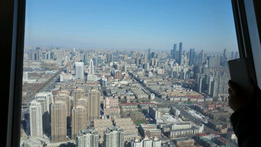 和老婆登上天津电视塔