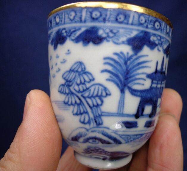 《乾隆青花描金楼阁山水图把杯》径5.7厘米,高6.3厘米,全品。喝茶送礼,把玩神器,喜欢的抓紧,价格不高。微信w707073855