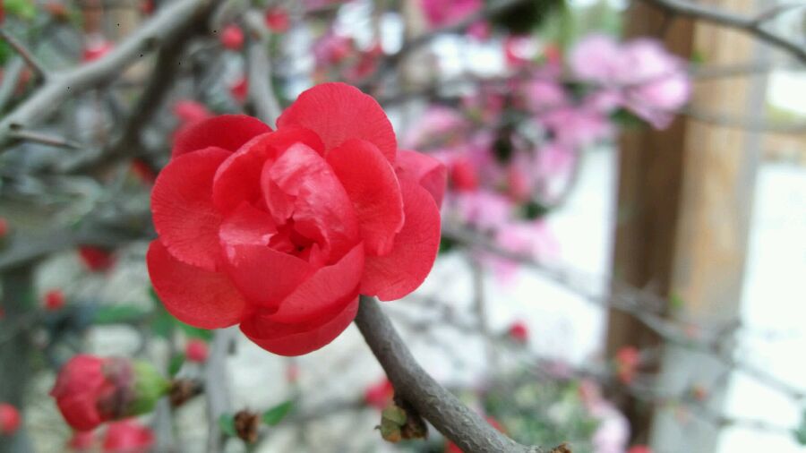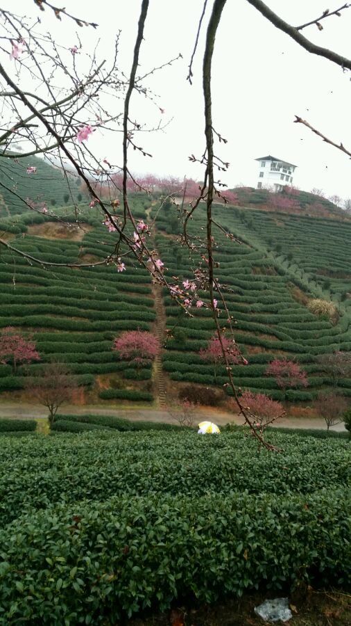 下雨,樱花上都是雨水,一手拿伞一手手机,对焦对得我