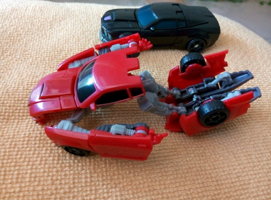 来看主体,黑色的纯塑料色,红色有一种珠光漆的效果,很漂亮,车窗都是涂装