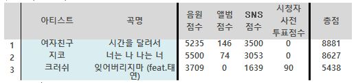音源 专辑 好感 SNS 放送 生放送投票 总分