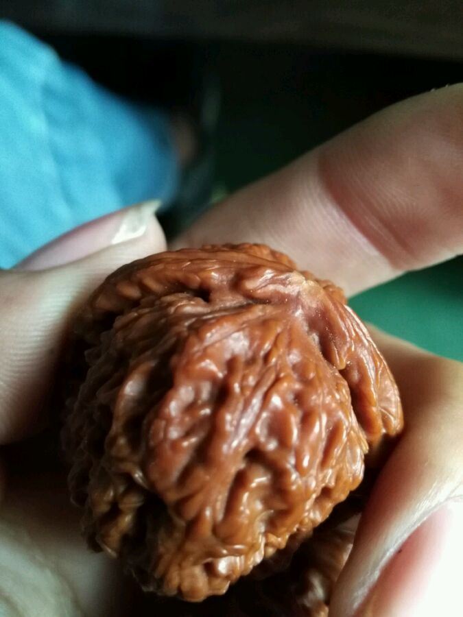 第二对,叫野秋的小核桃,皮子油性大,手感好,感觉也打手,还有最大的一个优点就是不怕摔,真的不怕摔,掉地上像乒乓球似的弹起来。哈哈,就是小了点。想弄对大的,虽然卖家说是狮子头,可我觉得更像官帽,屁股很性感,紧致。就是不好上色
