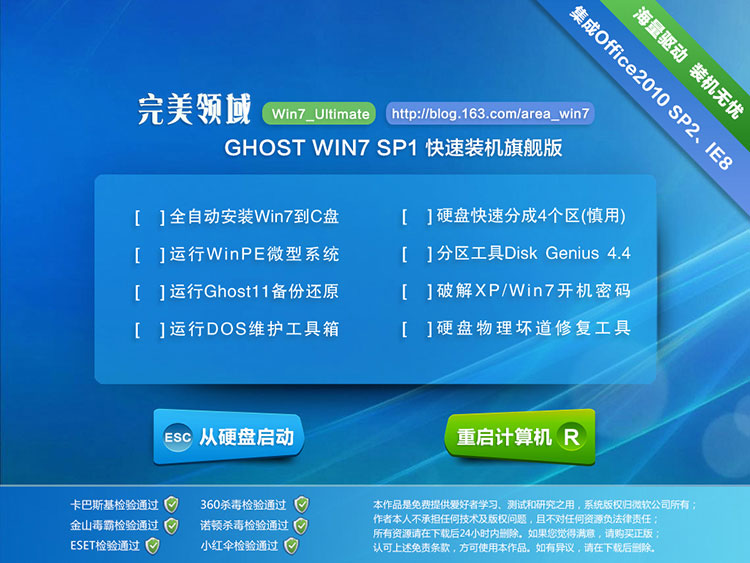 制作母盘:MSDN官方Windows7 SP1 原版镜像,补丁更新至2015年02月办公软件:Office2010 SP2(Word、Excel、PowerPnt原版),IE8(原版)