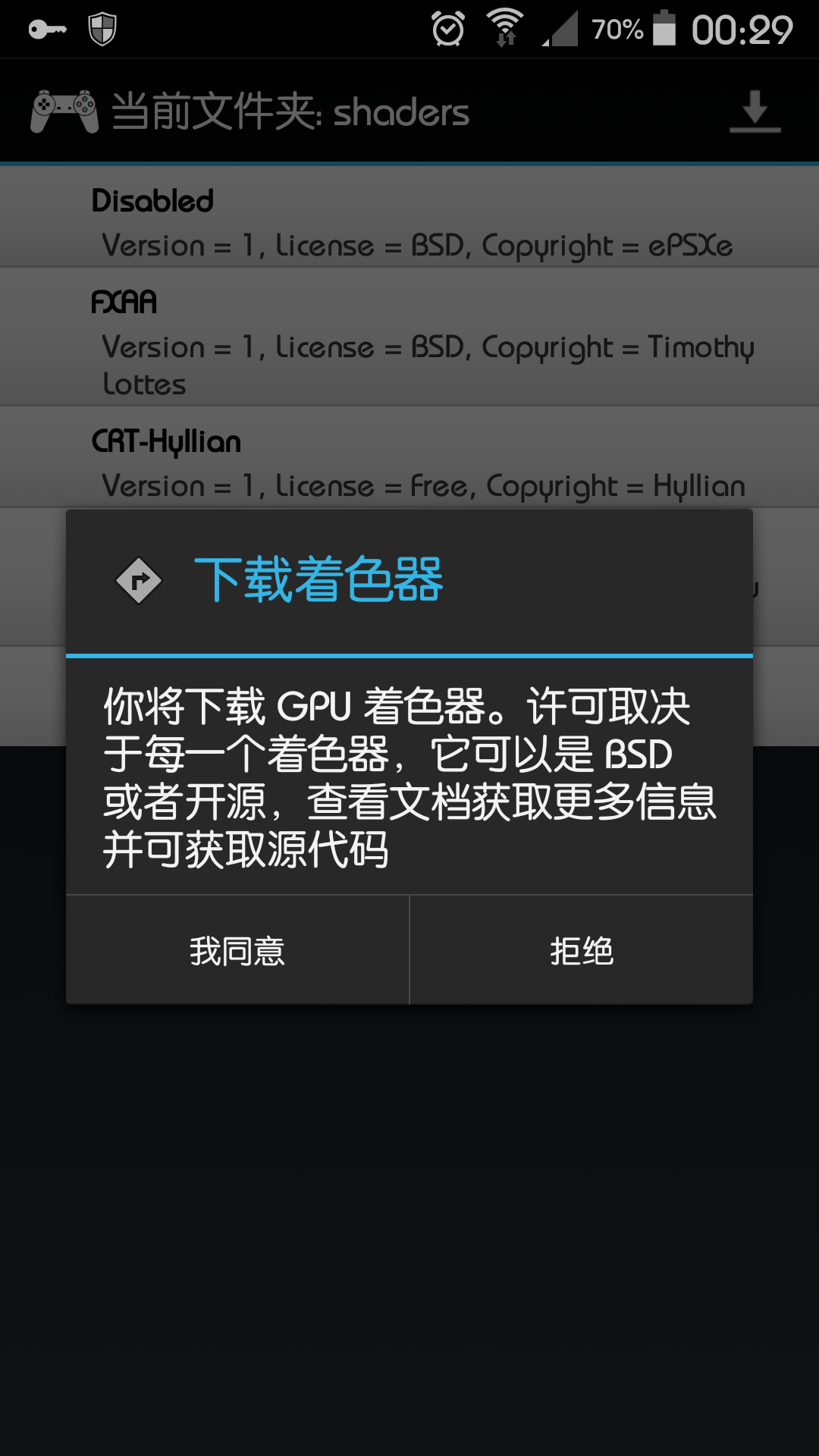 * Added simple shaders support. In this version you can select the shader to use, it can be NONE, FXAA, CRT-Hyllian, xBR-LV2-3D, CRT-lottes or other custom shader (Thanks to Hyllian and Lottes). It is possible from the shader selection screen to download a pack of shaders or you can add your own shaders