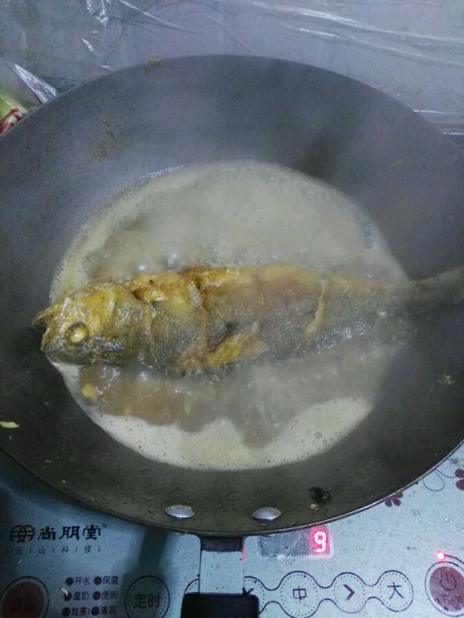 先上硬菜,煎烧黄花鱼!再来个软菜,炖豆腐!