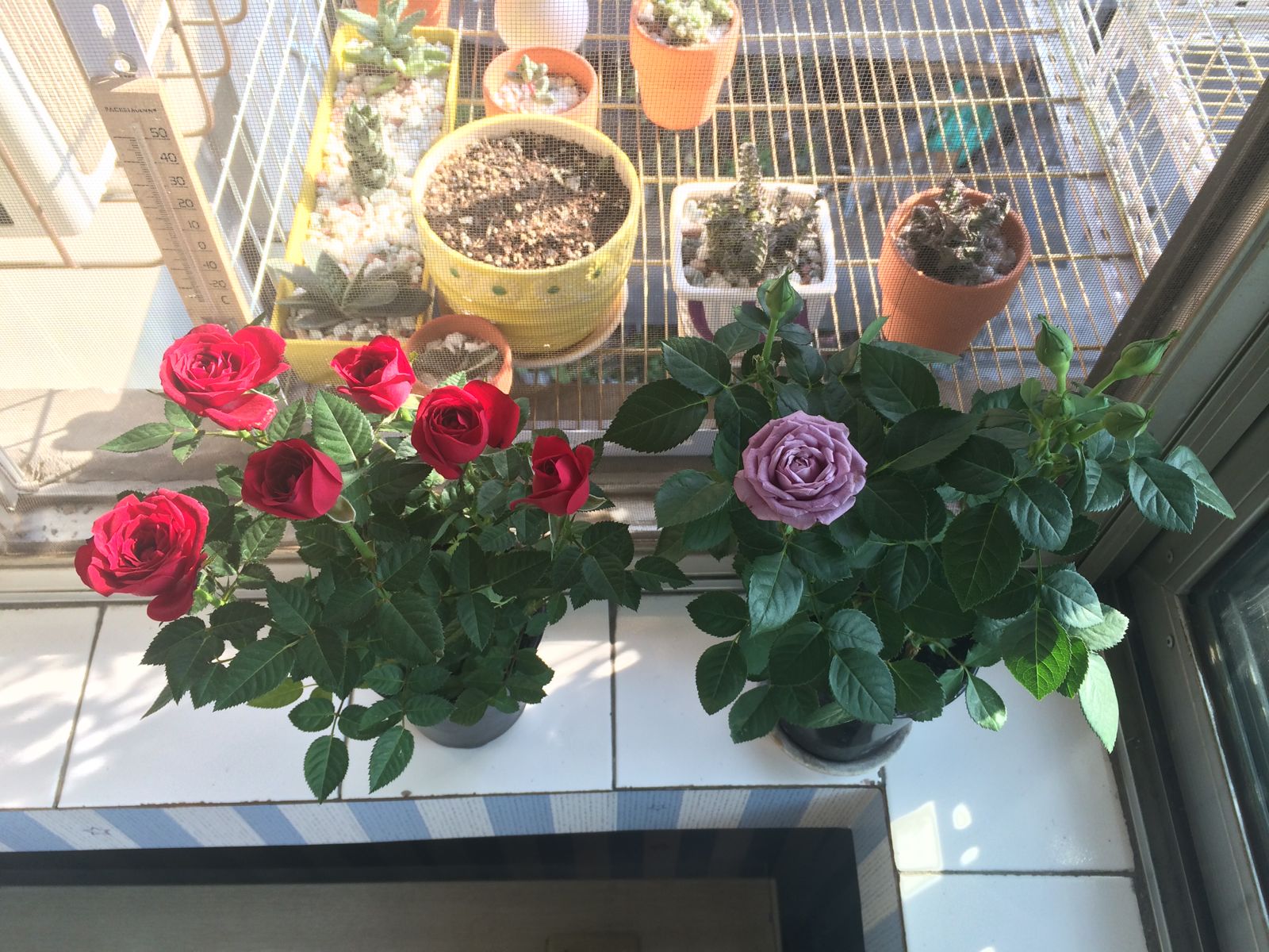 这是刚买来时,大红色那盆,中途长过红蜘蛛,都结丝了我才发现
