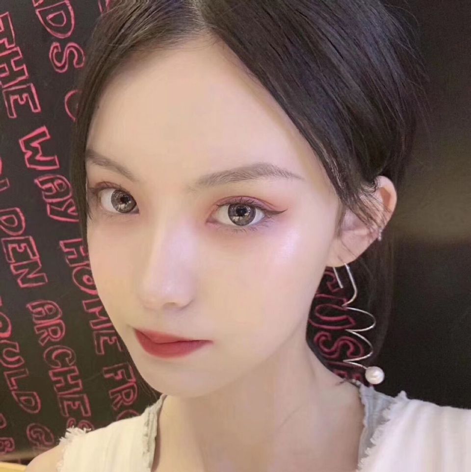她大概长这样,圆圆的小脸蛋,笑容弯弯的弧度。双眼斜视一方