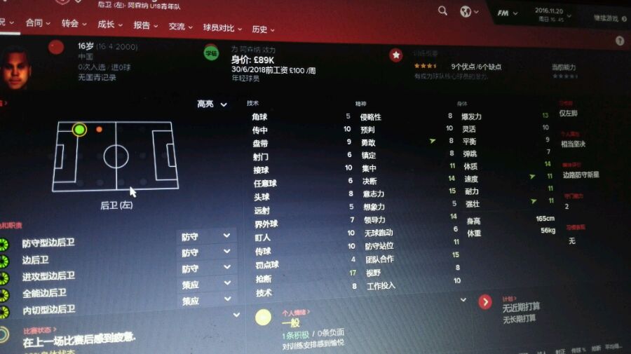 ,我次奥,这tm是16岁么?防守型边卫。我打算练成进攻型的。用球探工具看了,潜力166
