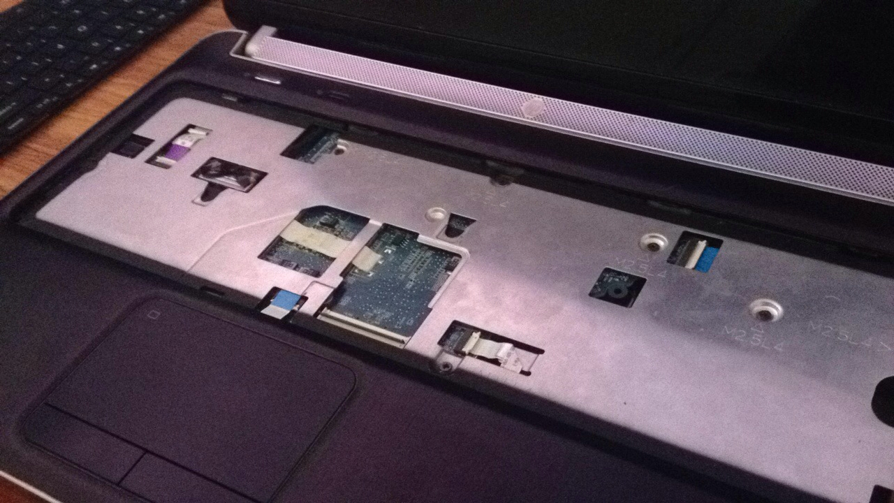 把开机排线、显示屏排线、USB接口排线、触摸板排线、指纹排线拆下来,把B壳拆下来后可以看到主板了