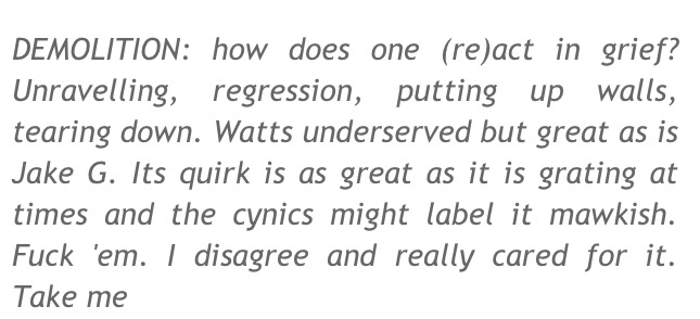 【Demolition】格拉斯哥电影节反应