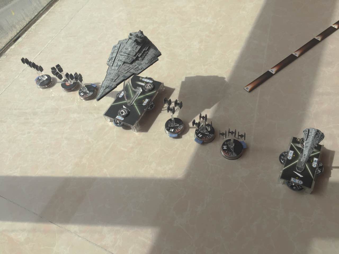 第三轮,双方尚未接敌 ,尼布隆舰收得一枚攻击标记,Mark ll收得航行标记,CR90再次提速。