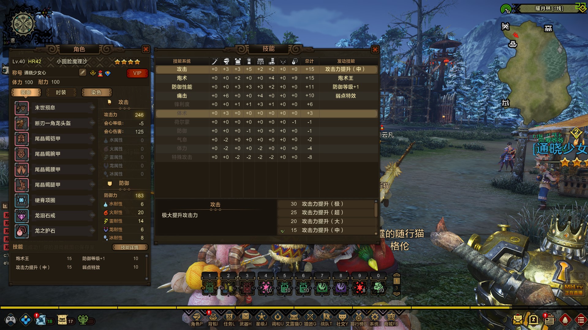 最近弄到了炮术9护石导致技能珠的选择范围大了很多 能配出弱点攻中或者攻大业物了