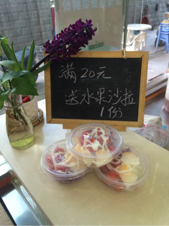 耶,今天白领份水果沙拉,哈哈哈,爽