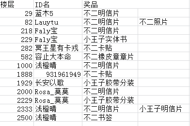 目前为止所有活动中奖情况如下,若有统计失误请不要客气地指出吧(感觉我蠢蠢哒一定会出错TAT):