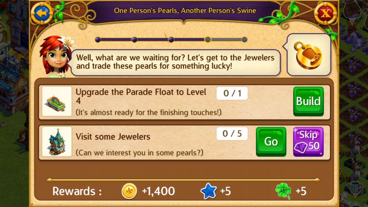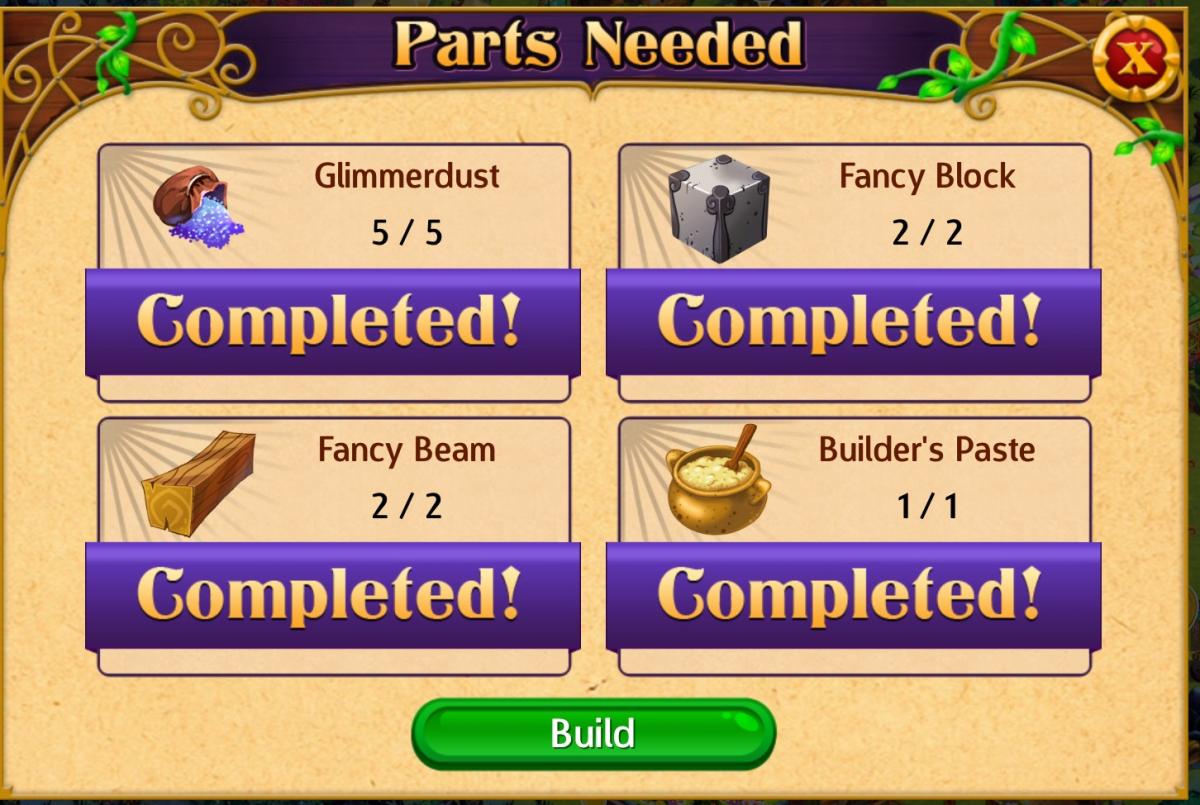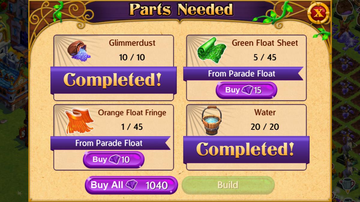 * Build the Parade Float 0/1 (build) 500coin, 2 fancy beam, 1 builder's paste, 5 glimmerdust, 2 fancy blocks