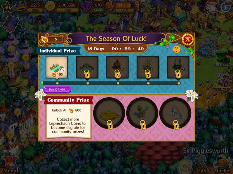 Rewards: 270 coin, 2 xp, 3 Lucky Clover