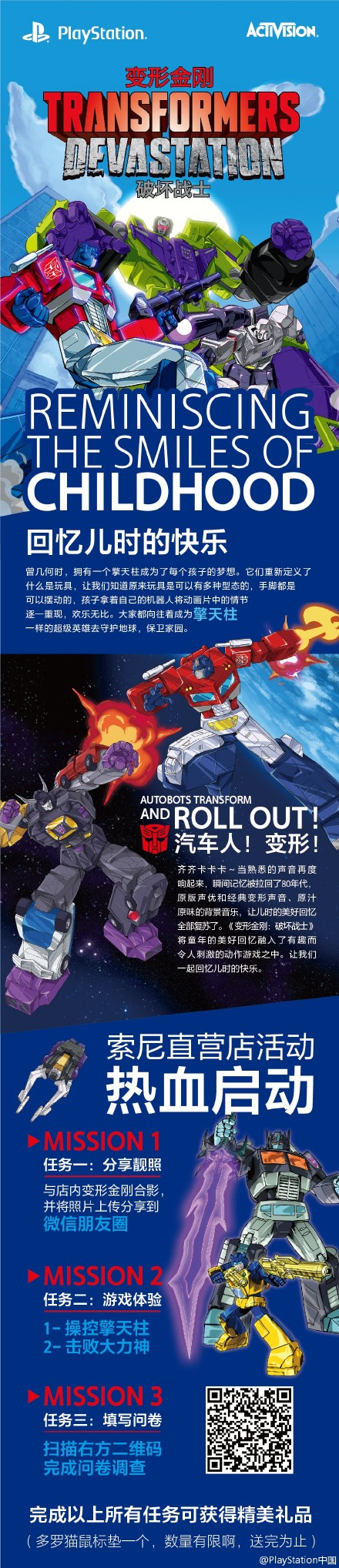 本周末开始,全国4家索尼直营店及2家PlayStation官方授权店将陆续举办《变形金刚:破坏战士》体验活动!3月5-6日最先开启上海站体验活动,不仅可试玩刚刚上市