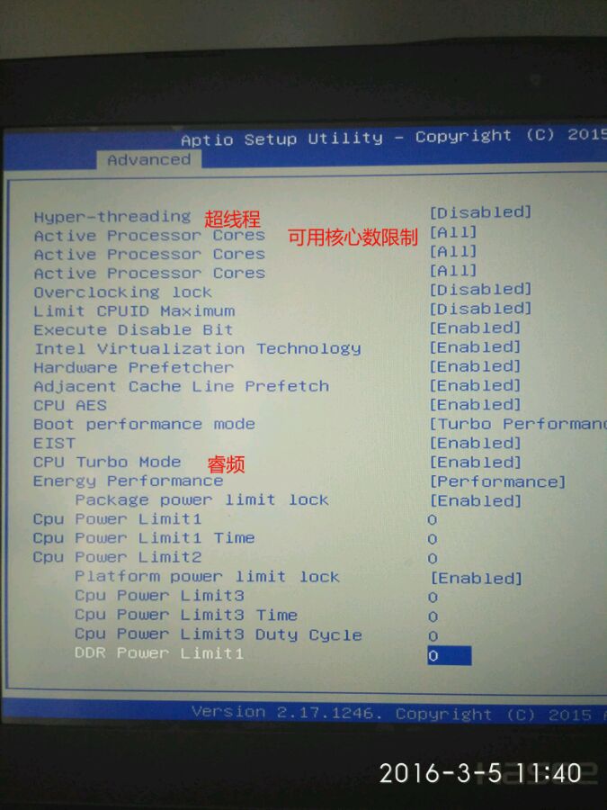 4:cpu设置,睿频,超线程,可用核心数,功耗,倍频什么的