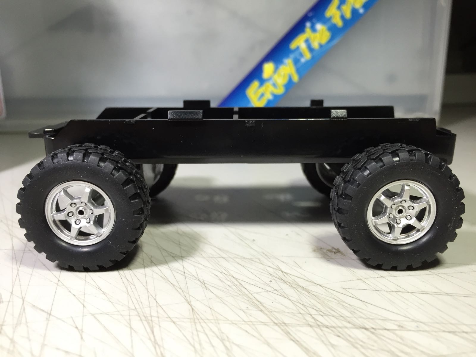 组装电动小汽车满满的承载了我童年的记忆,那时玩不起田宫的原版模型(小时候管奥迪叫双钻,田宫叫双星),只有通过便宜的仿货过把瘾。前些日子翻看某宝,田宫的这些组装小汽车又勾起我的回忆,突然觉得RC和静态虽然适合大人玩,但是比较花时间,这些小车零件少,很快可以做好,好看又好玩,关键是还可以找回小时候那份最初的感动,于是就开盒了这辆三菱帕杰罗,慢慢享受制作的过程。