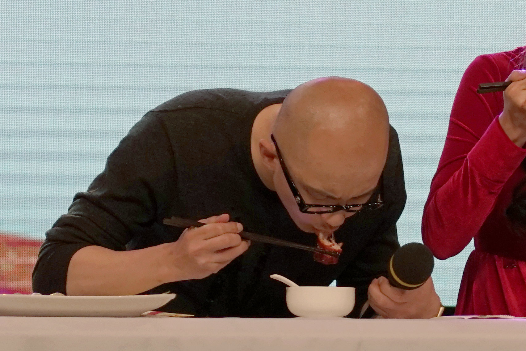 麥克風還不放下,是要發表吃後感言嗎?