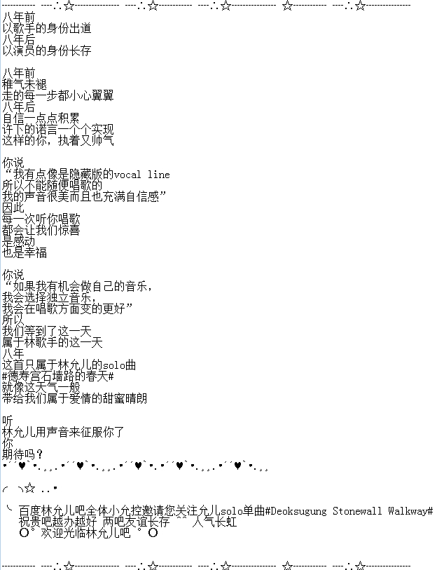 .•´♥`•.百度林允儿吧邀请您关注允儿solo单曲
