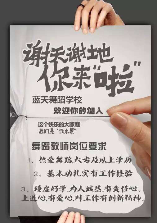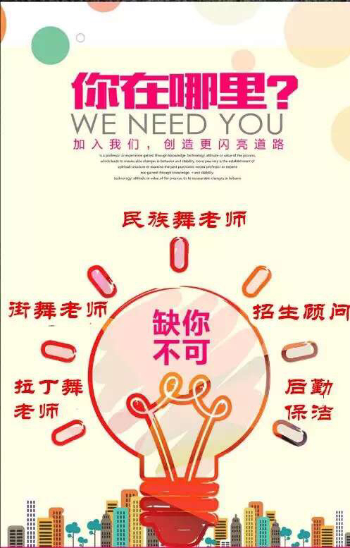 寻人启事! [酷]洛阳蓝天舞蹈学校因新校区发展需要,现招聘舞蹈教师[爱心],前台招生顾问[呲牙],全职兼职都可以,只要你热爱舞蹈[玫瑰],有爱心[爱心],有责任[奋斗],有经验,那就快来吧,我们找的就是你[勾引]!神马?工资多少?[坏笑]这样给你说吧,打打酱油一两千,出出小力两三千,发点小狠三四千,跺跺小脚四五千,努力拼搏就过万!!! [强]求转发,求扩散,这么高大上的招聘你忍心不转发吗?哈哈详询周老师