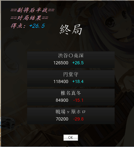 03/12 | 牌譜 | C1030 般南喰赤 | http://tenhou.net/0/?log=2016031218gm-0009-11030-d5cb0edc&tw=3