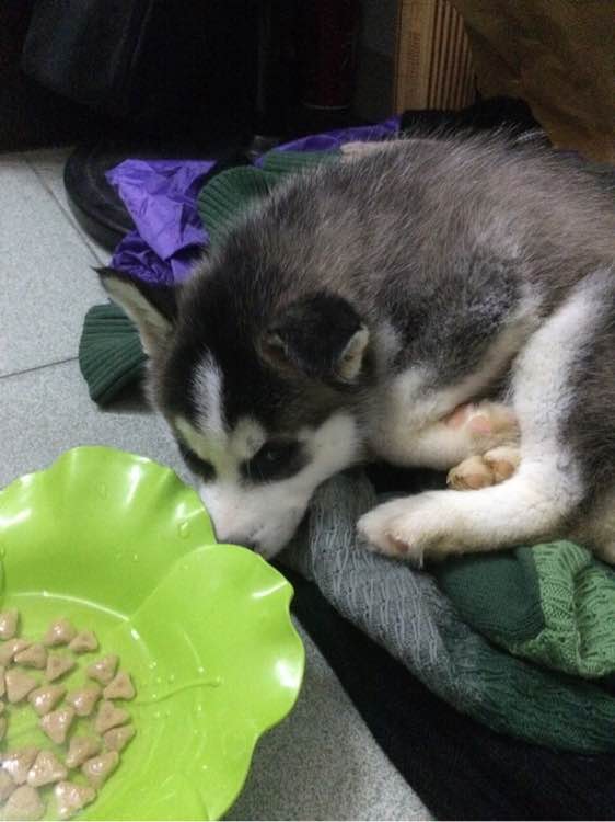 就昨夜三点多他一直叫,回来他没吃东西,泡的狗粮也没吃,担心他饿了,结果一吃就吃了两根,今早8.30给泡了三十来颗狗粮,一个鸡蛋黄,一点点火腿伴着吃,吃的好干净!
