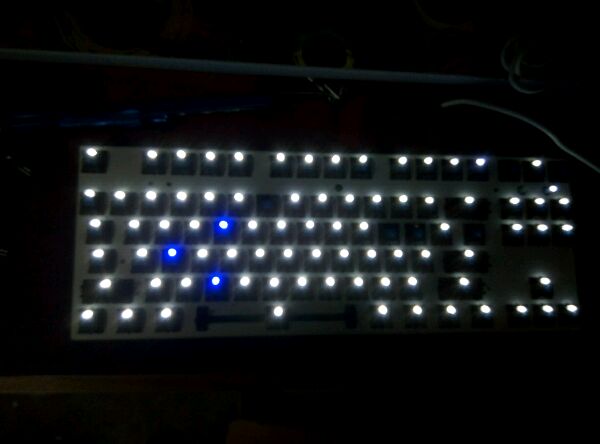 你把慢闪装IKBC上,看看会有效果么,一样是没有效果,慢闪是要有程序支持,本身就没有这个程序,如何支持闪.至于微亮你把七彩灯拆掉就不会了,后面那一排你把回车换个灯就好了.这个是灯漏电造成了,看这个灯应该是雄大光源那边买的.他家灯我就呵呵下