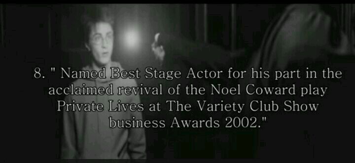 02年在The Variety Club(杂耍俱乐部)SHOW BUSINESS AWARD上因在Private Lives中出演the revival of the Noel Coward被指定为最棒的舞台剧演员。
