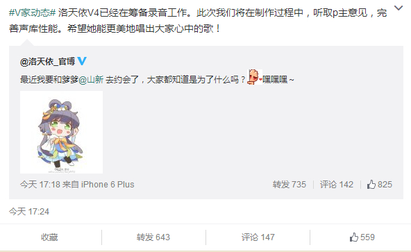 洛天依V4已经在筹备录音工作。此次我们将在制作过程中,听取p主意见,完善声库性能。希望她能更美地唱出大家心中的歌!