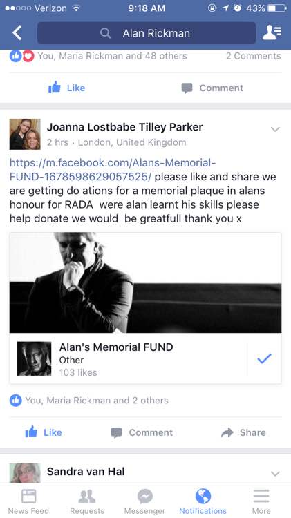 ARF们大家好。我已与皇家戏剧艺术学院取得联系,请求集世界各地ARF的意愿建造一个纪念AR的长椅并附上一个饰板加以说明。我得到了Patricia Myets的答复,她说这个主意很棒并且会告知AR的家人。