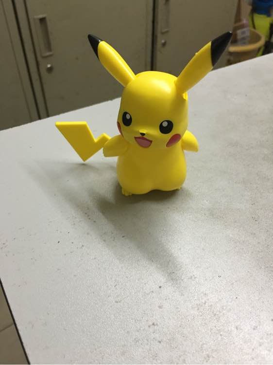 还买了焕宝贝喜欢的皮卡丘,买的时候没注意是自己拼装的,收到的时候我瞬间滴汗了,我这动手能力还有一天怎么搞定,结果我同事用了一小会就搞定了。。。成品如下