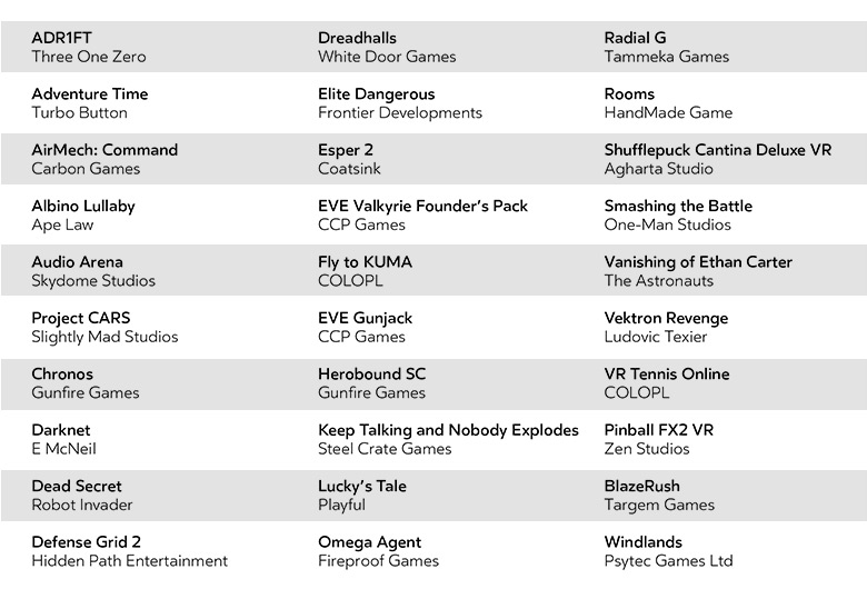 They have 11 rift only launch titles (3 may still get vive support), 8 gearVR ports, and 8 timed exclusives.