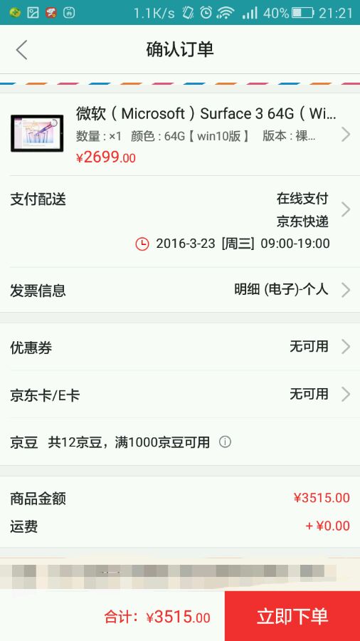 狗东上,surface3 2g 64g ,加688换购键盘,加59延保两年,加69意外保护两年,总计3515,可以入手吗