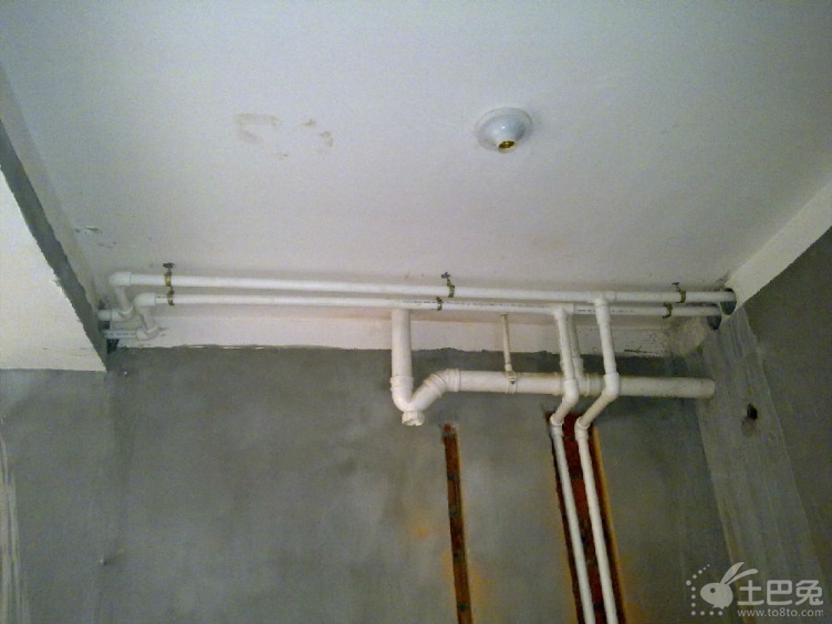 水管走顶部时: