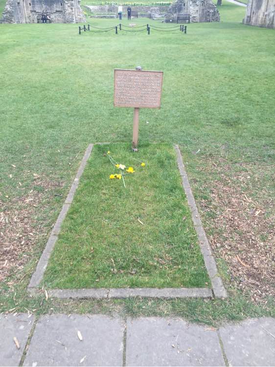 前两张图是旧的亚瑟王墓遗址和下图是亚瑟王墓。亚瑟王和王后合葬。据说亚瑟王和王后的遗体在1191年被发现,随后夫妻两被国王爱德华一世重新厚葬于3、4、5图所在地。稍微迁移了下,距离不到百米。1539年,墓也被损坏了,成了现在这样:一个小牌子,周围是教堂和唱诗班的遗址(最后几张)