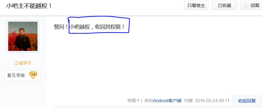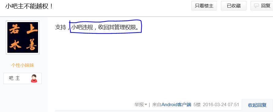 小吧主不能越权! https://tieba.baidu.com/p/4432882273