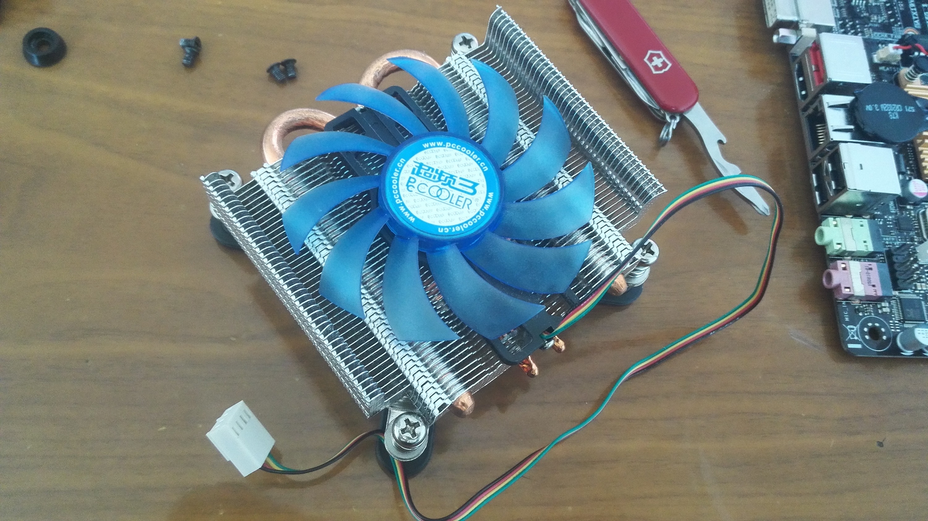 涂完了硅脂才想起来,我的散热器呢?找了半天,靠,这废材跟两个青鸟3在柜子的角落里搞基呢。。。这个散热器也是个大坑,大家千万不要买,除了薄这一个优点,再没优点了。。散热器做到这份儿上,也算坑到家了。。