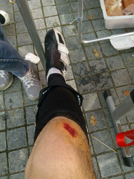 对,我就是那个穿着miku瞎溜达的,大概110公里由于拐弯减速太多被队友追尾,站起来把手变扳回来,继续追,没想到第一集团趁此机会开始了大淘沙,扔下不少实力一般的,最终他们走错路了,我跟着tcct的大神们顺利溜车到了终点,感谢医疗救护人员为我擦药
