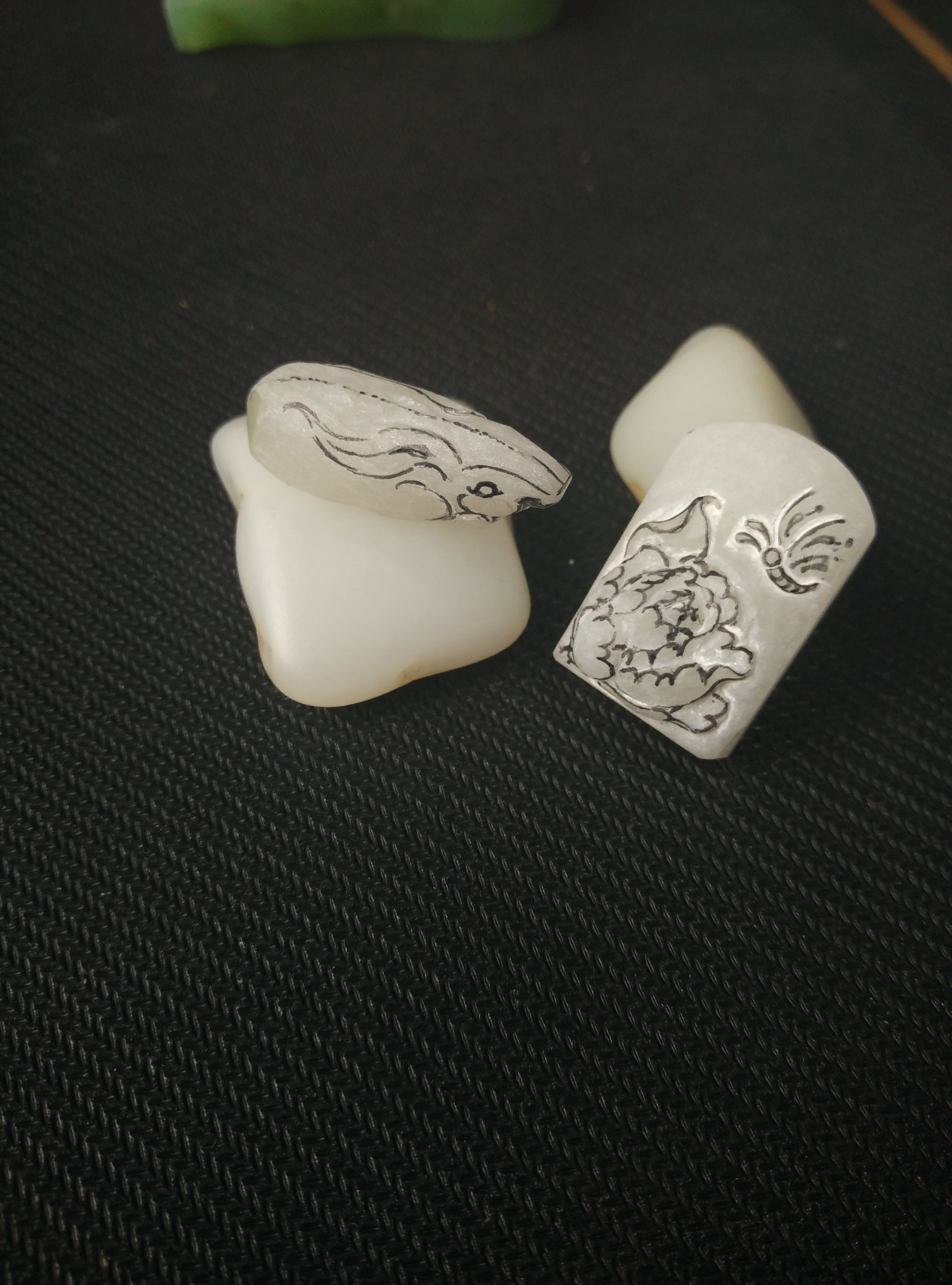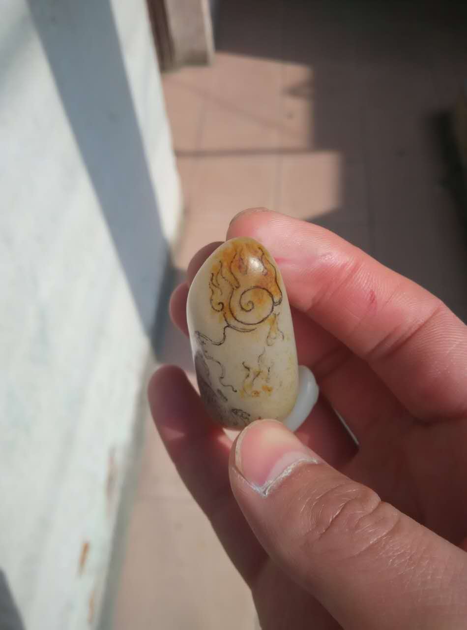 )整个材料最后磨成一个蛋面状,表面皮色巧做蝙蝠,有鸿运当头的意思。
