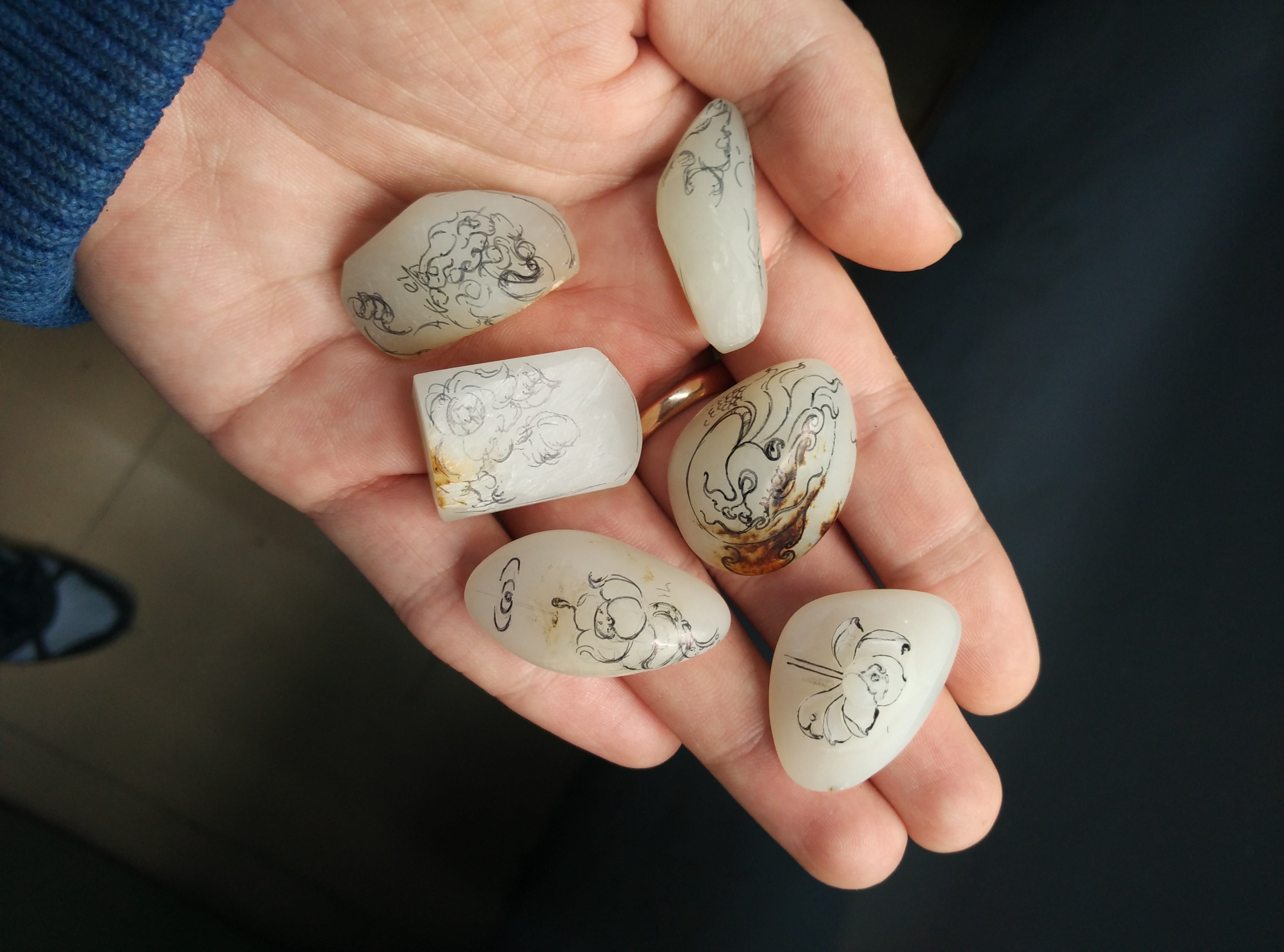 客户当时发来的cad图找不到了,但是带有浓浓的电影人style。区别于电影制作可以利用阴影和3d技术,作品是平面的单色的,要在薄薄2mm范围内表达清楚各个手指的前后关系和手掌的起伏,注定了设计上不能天马行空。最后跟客户沟通,还是采用凝练了千百年,经久不衰的传统佛教手形。这样,整件作品客户自己也就定名《送福》