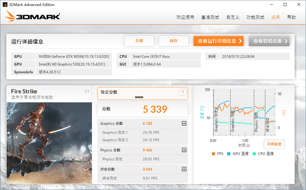 X模式下的跑分,总分数X2665,其中图形分数为2464。X模式下新版965M比老版的高了17.2%。