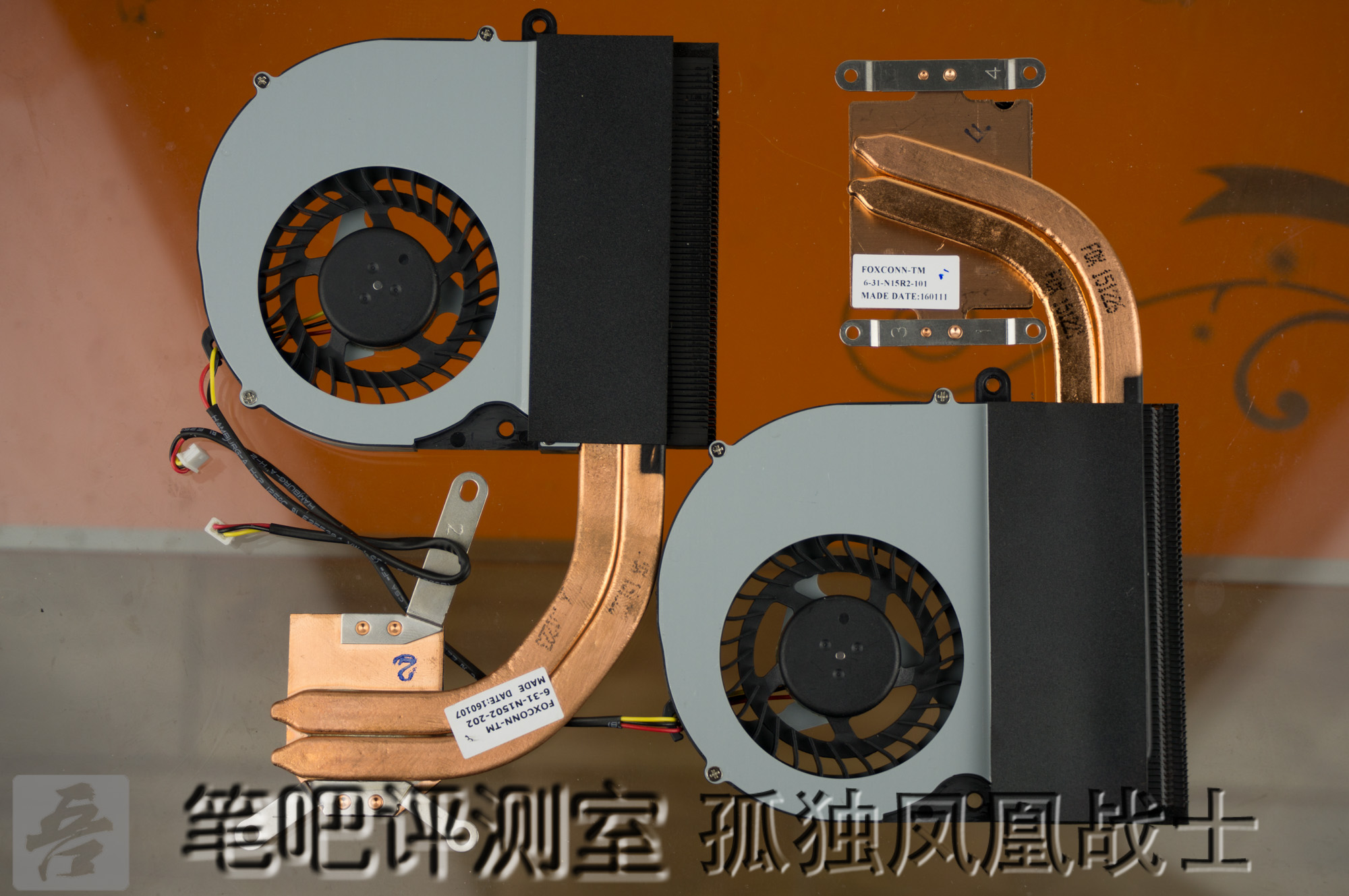 CPU和GPU各分配了2根热管和1个风扇。散热模块只考虑核心发热,显存和供电都没有照顾,其中显卡供电在烤机时表现出了高温情况,没照顾到非常可惜。鳍片是纯铜。