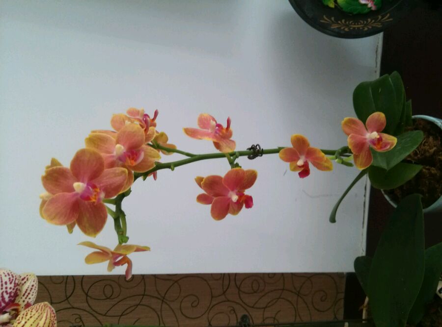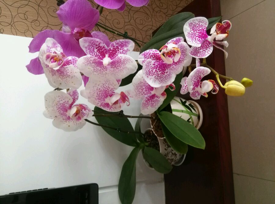 今天逛农贸市场,居然看到一个卖花盆儿的摊位有几棵蝴蝶兰在卖,都是我喜欢的,50元买了三颗, 虽然花儿有的已经蔫了,有一个花箭也折了,但是能清楚的看到花儿,就不用担心不对版了,并且花还能看一段儿时间,觉得很值。