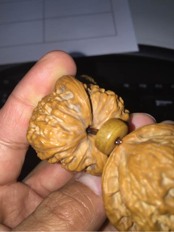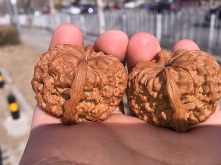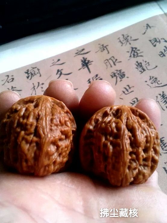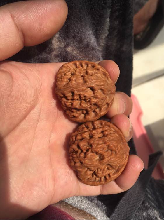 从为核大哥那里买一对玲珑,赠送了我一对这样的小核桃。说是个什么品种来的?反正就是送我啦,让我感受一下皮质。