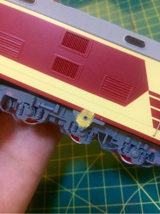 对照图片,真车的吊装孔就是红色的,于是自己也准备将其涂红,前期还事儿逼似的用遮盖带将周围盖上,事实证明这步纯属脱裤子放屁………