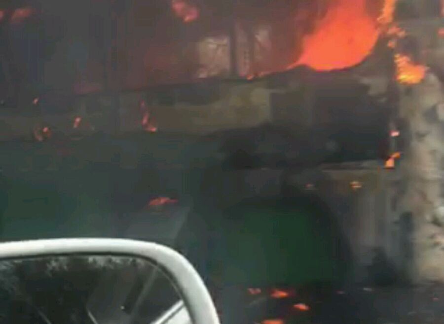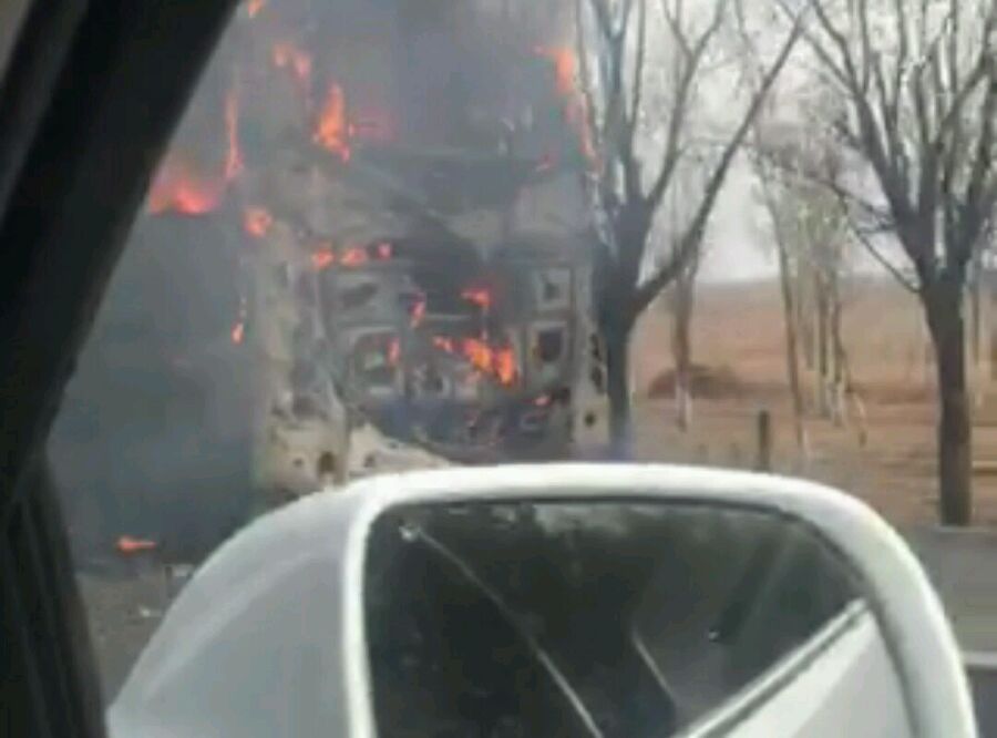 运风高速粟海段发生一起客车着火