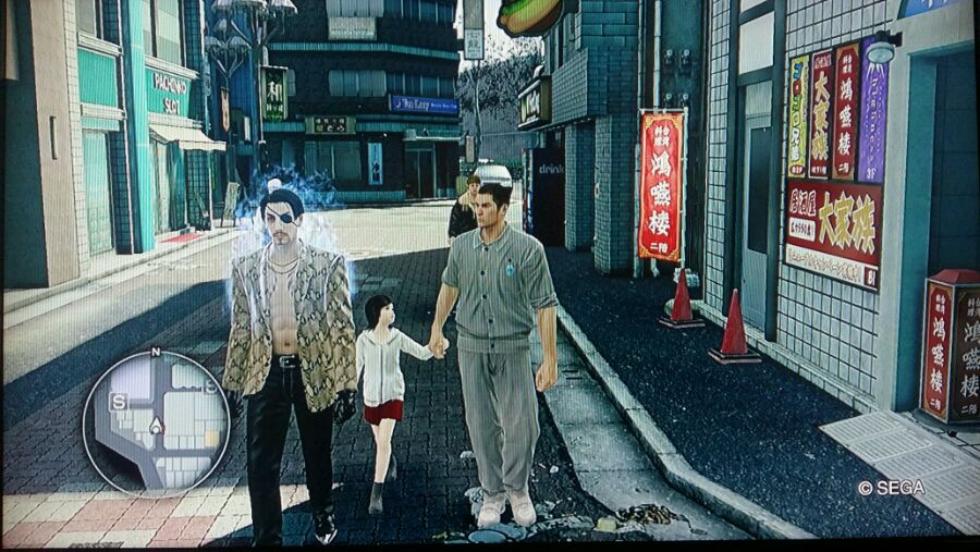 有一天,真岛大哥突然不找我麻烦了,可能是因为看见我们两个人这么温馨,所以过来和桐生酱一起带着小遥散步,不过吾郎大爷肩膀上的火冒三丈迟早还是忍不住会揍我的